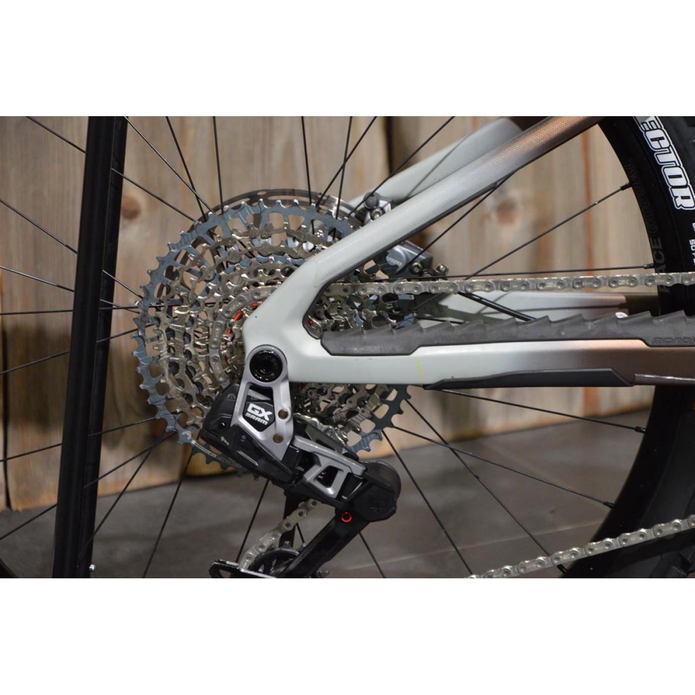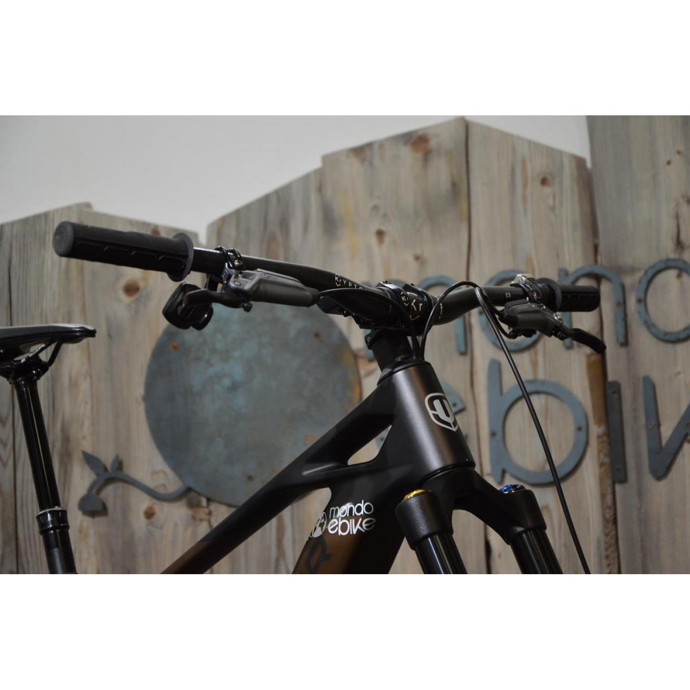 | telaio | Stealth Air full Carbon, sistema Zero Suspension ottimizzato per e-Bike, Mullet, escursione di 165 mm, Forward Geometry, batteria interna rimovibile, asse posteriore Boost 12x148 mm, tubo sterzo conico, upper link monoblocco, passaggio cavi interno HHG, cuscinetti sigillati con capacità di carico MAX, assi maggiorati da 15 mm, esclusivi coperchi motore in plastica. |